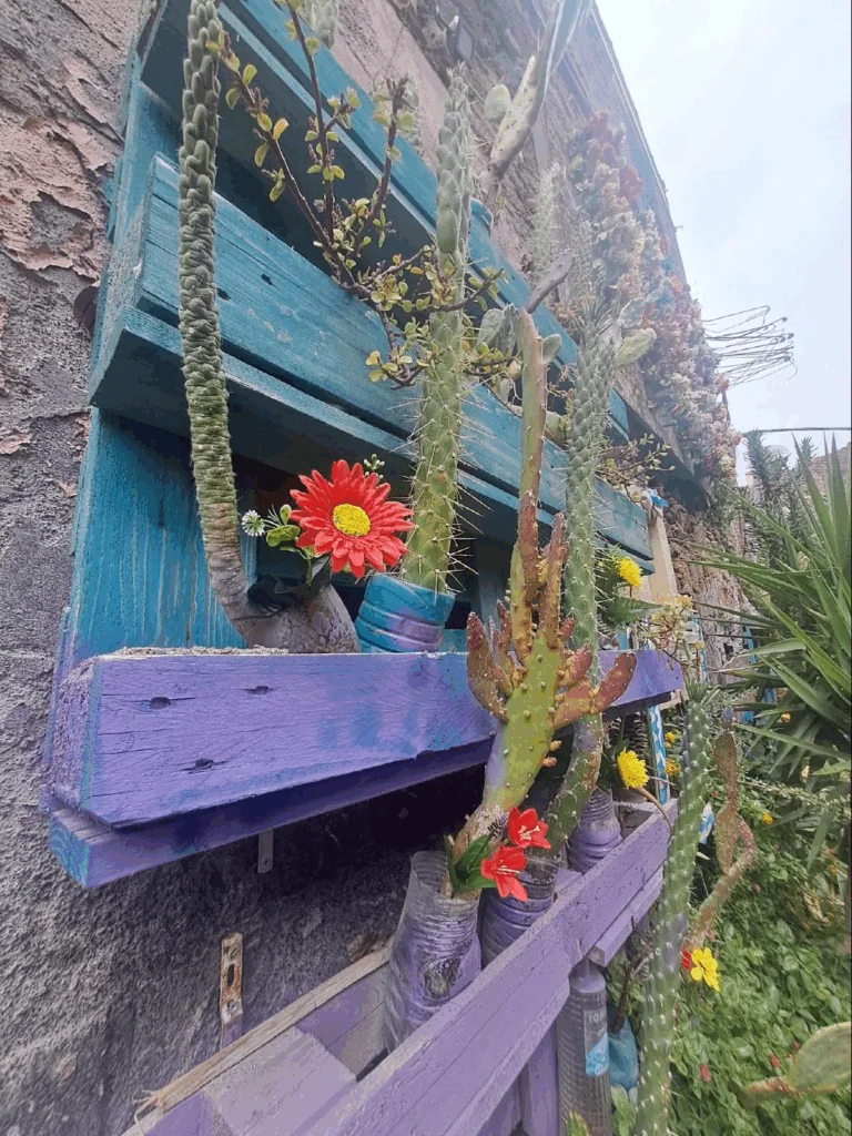Po africké části se ocitneme v místě, které nám připomíná ulici Ve Smečkách a nebo Perlovku, ale zda je to jen zdání nevíme a i sama Virginie je pak překvapená, kdeže jsme to byly 🙂 Naši tour de bizár končíme v místě, kde jsou ulice vyzdobené graffiti a květináči z pet lahví.
