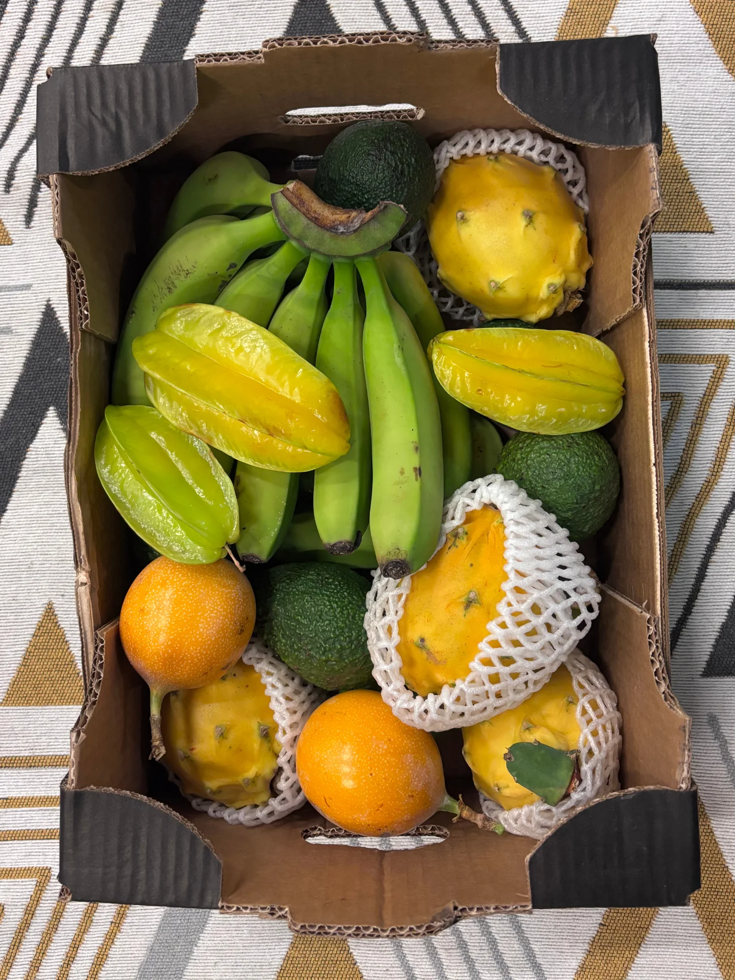 Pokud toužíte po sladké chuti tropů, tohle je ono. Každý kousek dozrával přirozeně, na farmách, kde se o plody pečuje s láskou a respektem. Banány, žluté dračí ovoce, avokádo, mučenky a papája.
